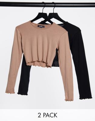 Missguided Ribbed Long Sleeve Crop Top Camel / Missguided pink long sleeve scoop neck crop top uk 6 eu 32 us 2 (fj232).