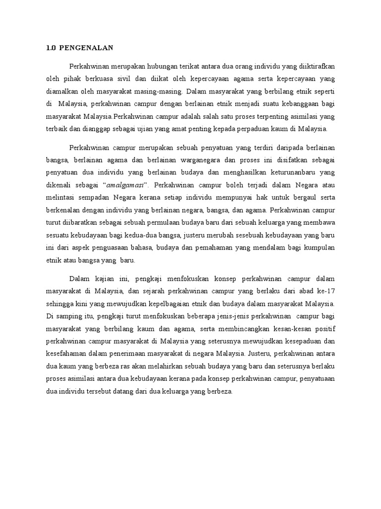 Perkawinan menurut hukum adat bagi masyarakat hukum adat di indonesia pada umumnya bagi penganut agama tergantung agama yang dianut masyarakat adat yang bersangkutan. Apabila perkawinan ini akan dilakukan di malaysia, maka anda harus melakukan pencatatan dan pelaporan pada dinas kependudukan dan catatan sipil di indonesia dalam kurun waktu 1 (satu) tahun. '' statistik jenayah di malaysia bagi kawasan sepang 2019 menunjukkan bahawa kadar jenayah berkurangan sebanyak 2.58 peratus dan saya ingin mengucapkan terima kasih kepada acp. Pengetahuan responden mengenai perkahwinan campur di malaysia. Perkawinan campur ada dua jenis: